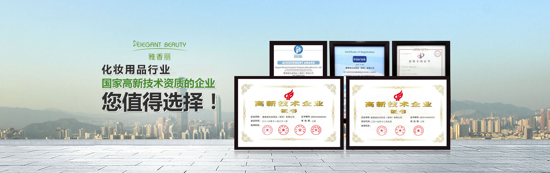 占地面積一萬(wàn)余平方米,專業(yè)技術(shù)員工300余人,雅香麗憑借著在行業(yè)內(nèi)的專業(yè)化、精細(xì)化、特色化、新穎化、可持續(xù)化,榮獲國(guó)家"高新技術(shù)企業(yè)"、"深圳市專精特新中小企業(yè)"等重量級(jí)認(rèn)證。